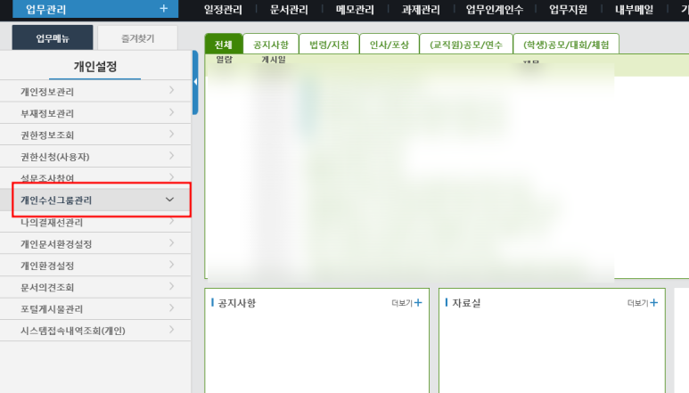 K-에듀파인 개인수신그룹관리 설정방법